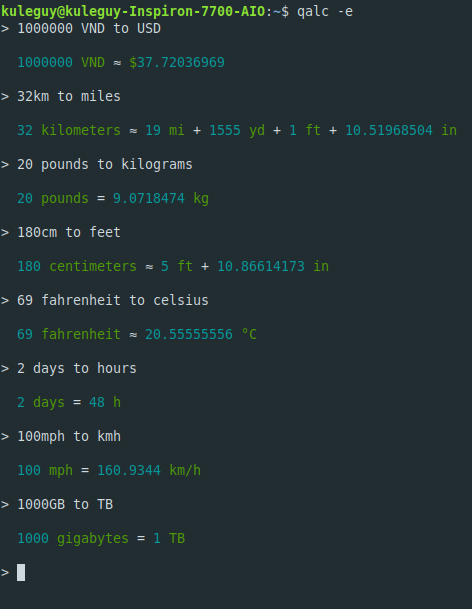 Qalc is a versatile cli for the Linux terminal. Although it's not as easy to use and fleshed out as the built-in GUI interfaces, it's still a worthy tool to use and a simplistic way to do calculations.