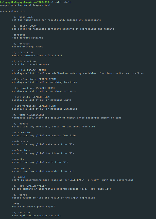 To end this blog post, this command just gives you the version number for the qalc program and that's it.