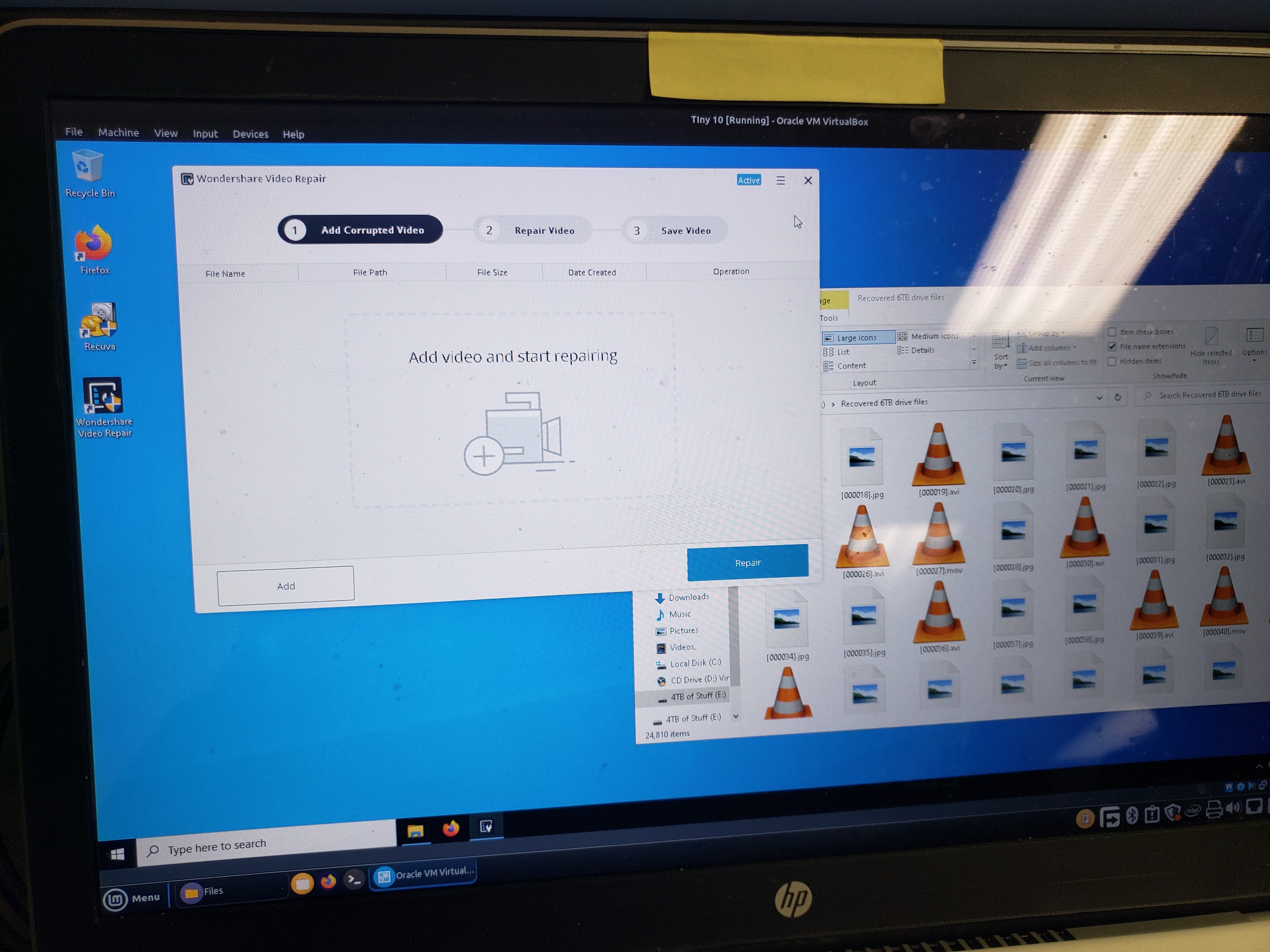 I also have a Windows VM so that I can use Windows software to further recover files. I have dual booted Windows and I could use my Windows partition, but this is a light task and using a VM makes sense for me as I want to use Linux at the same time.